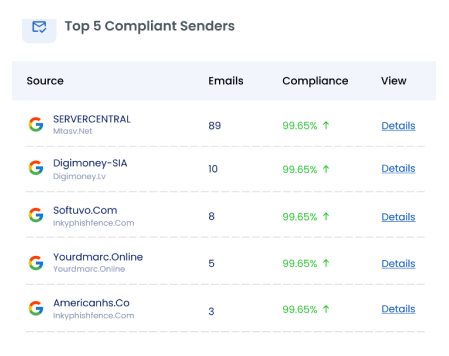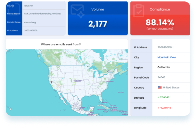 Analyze your incoming DMARC Report data to identify issues with DMARC compliance, SPF/DKIM delivery problems, potential phishing threats and misconfigured senders.